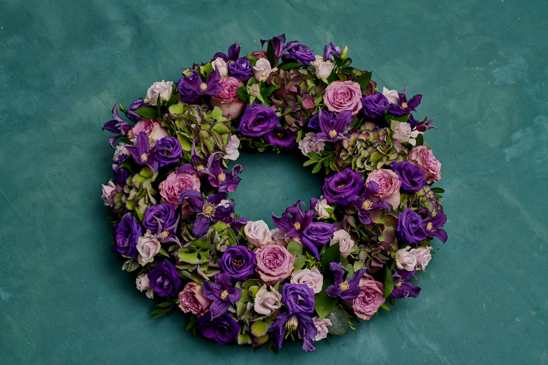Floral Wreath - a thoughtful condolence gift, crafted in your preferred colour scheme using seasonal flowers and foliage.