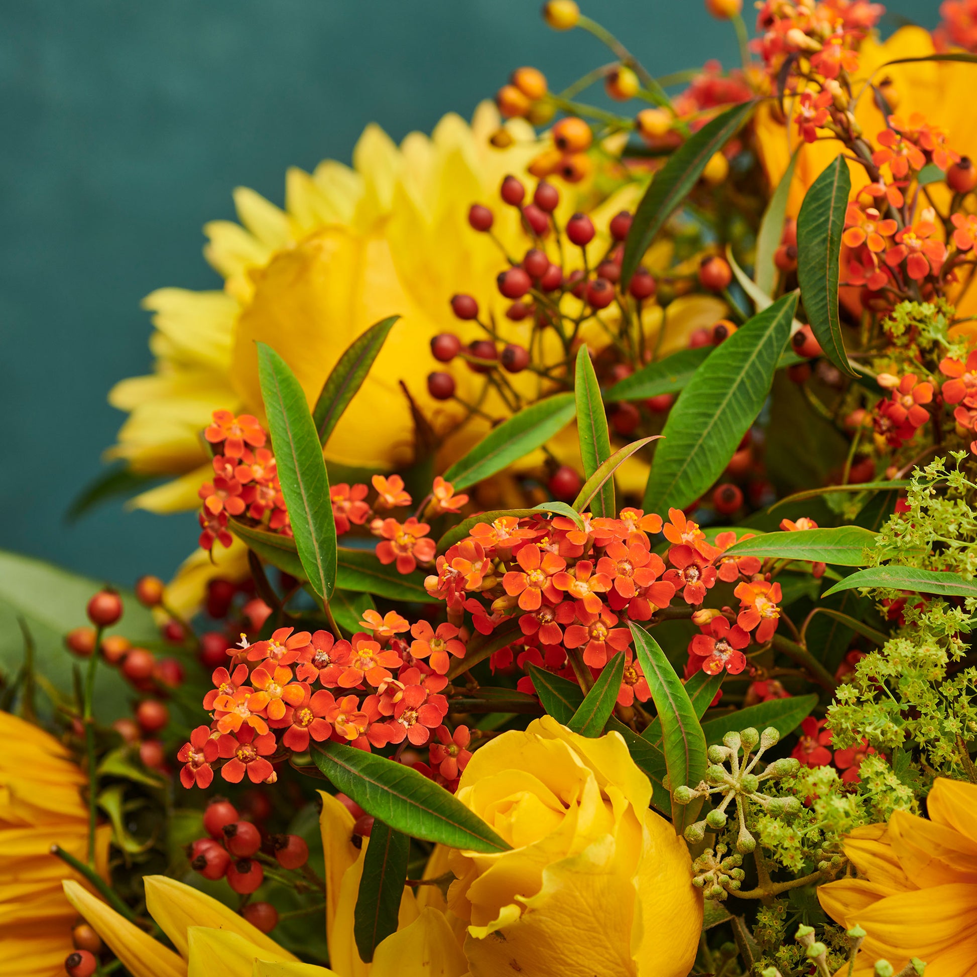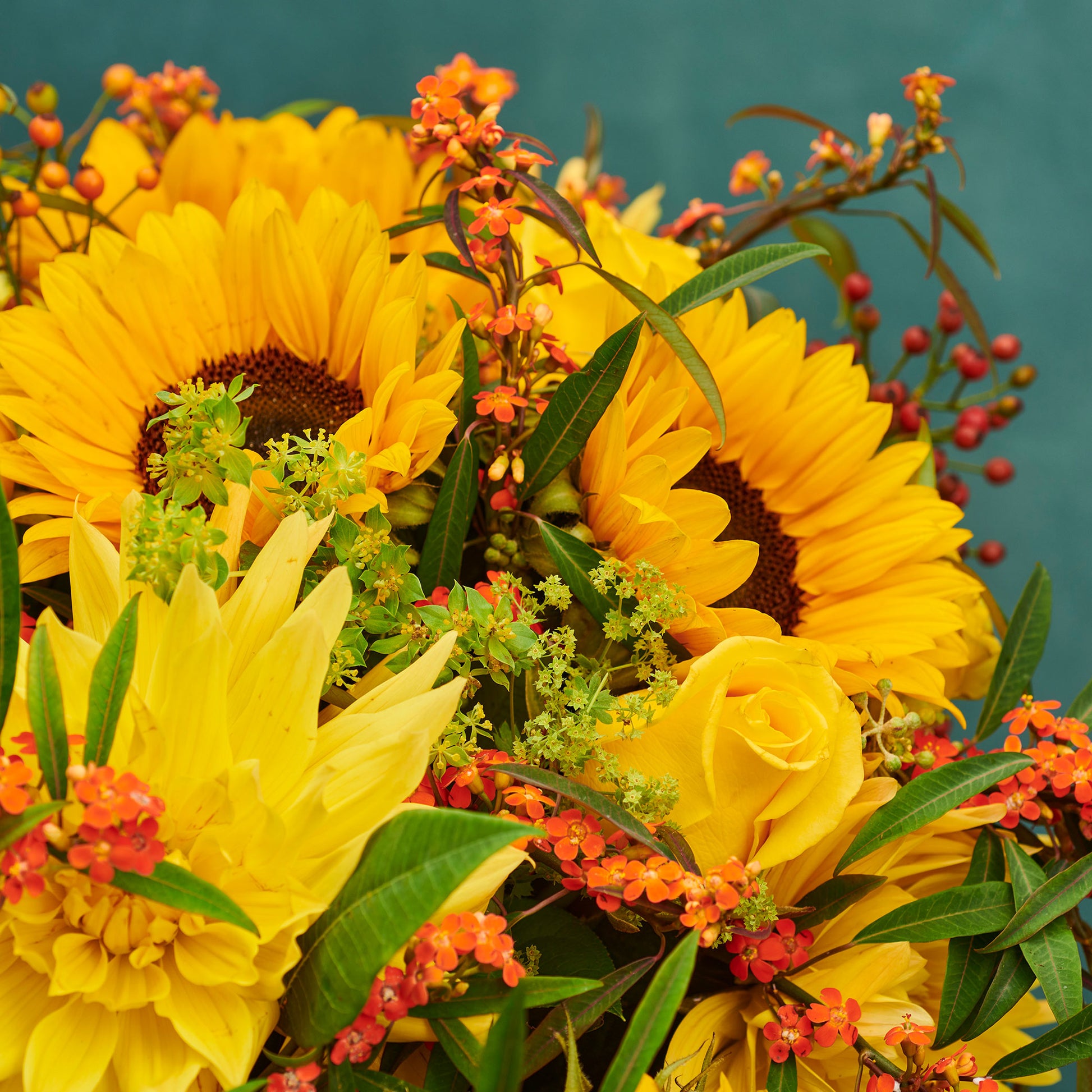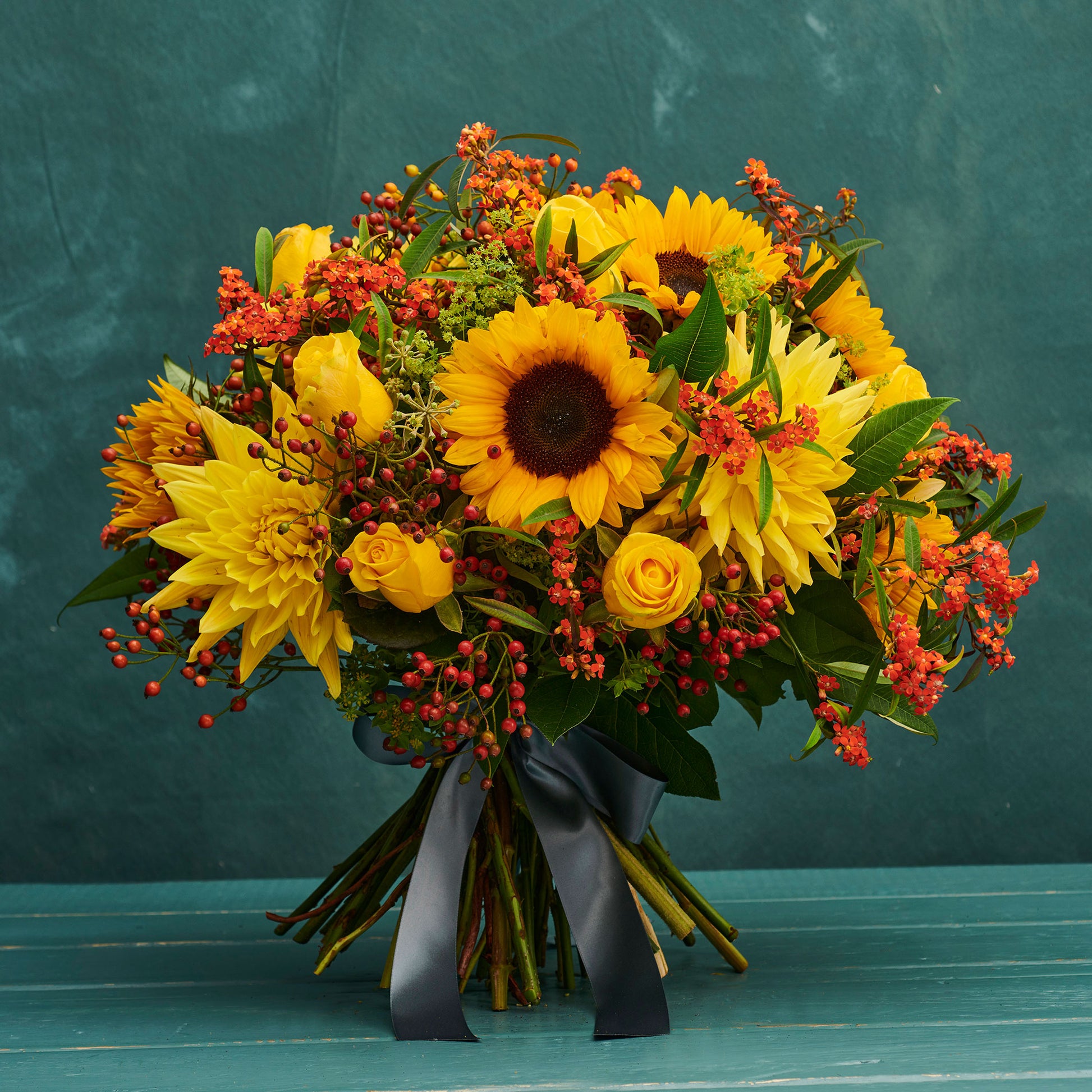 The Barley – evoking the long days of summer heading to harvest time, this sunny combination includes sunflowers and other seasonal flowers in yellows and oranges for an uplifting gift.