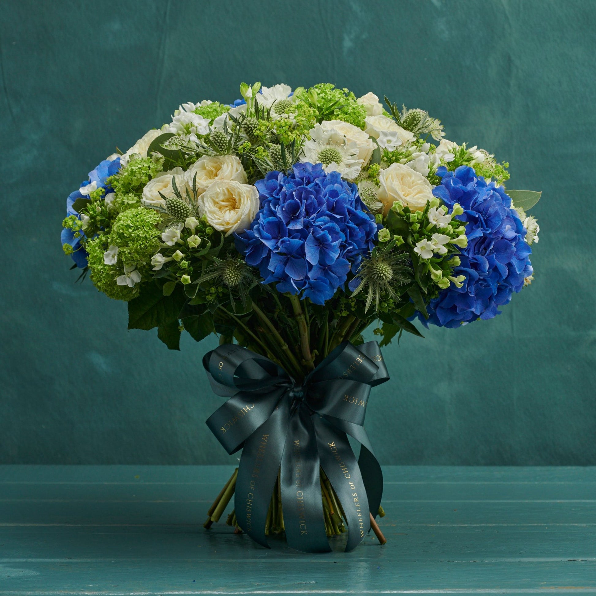 The Mayfield - this blue, white and green design, a classic combination, includes hydrangea, spray roses, bouvardia and lisianthus.